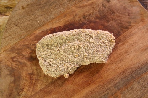 Dun mals lapje varkensvlees. Zacht van smaak met krokant laagje paneermeel